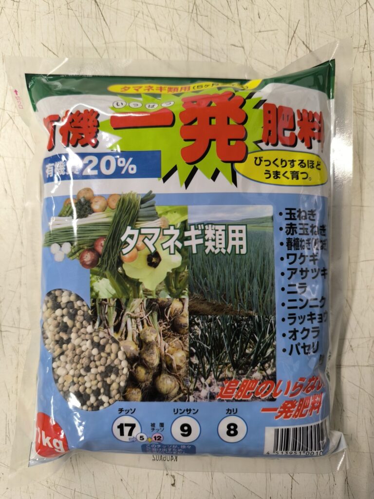 一株当たり4gで良いので1㎏袋で250本分の玉ねぎ苗に利用できます。
